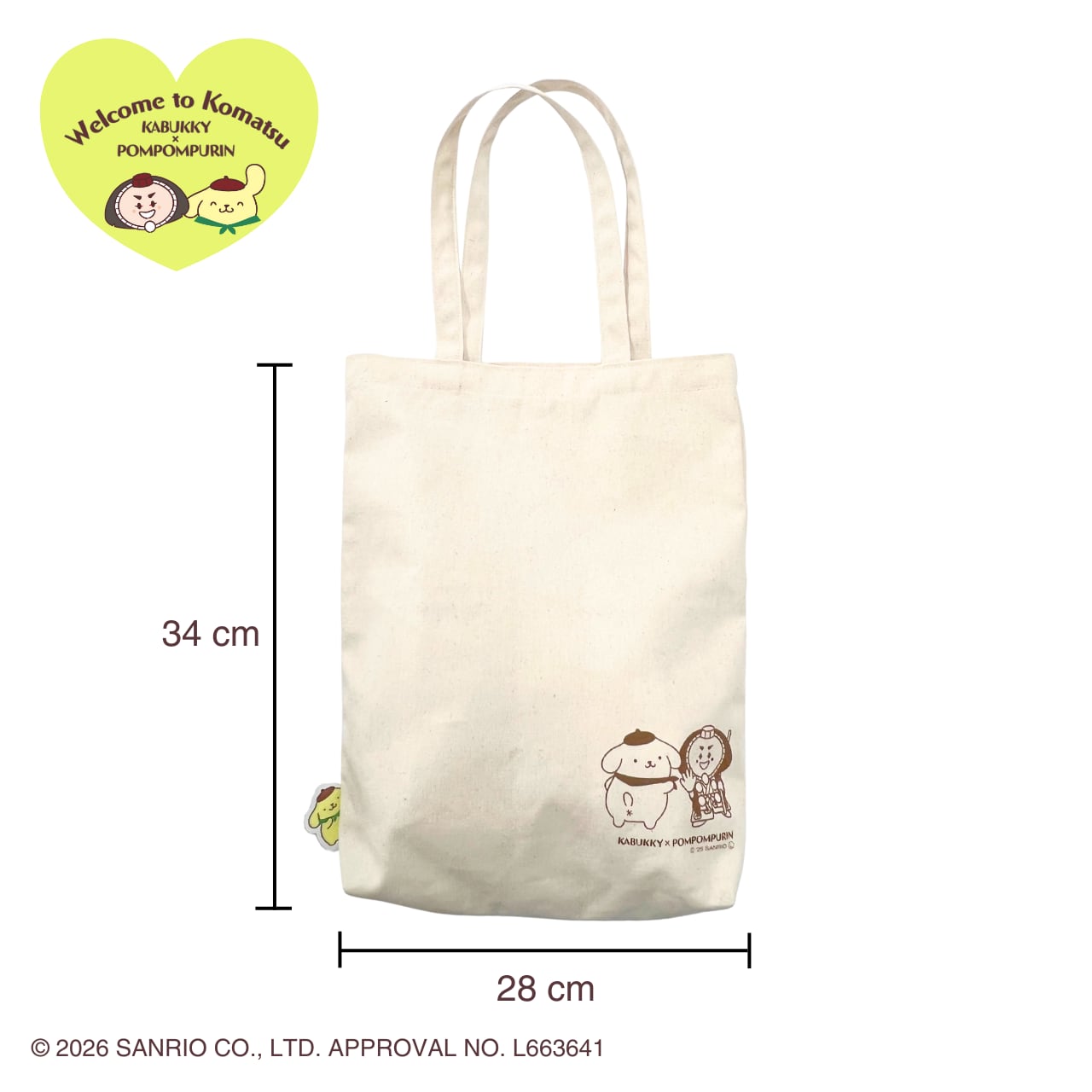 石川県小松市の公式キャラクター「カブッキー」と、「ポムポムプリン」が描かれた、オリジナルデザインのトートバッグです。