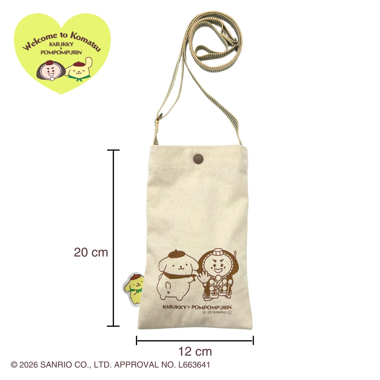石川県小松市の公式キャラクター「カブッキー」と、「ポムポムプリン」が描かれた、オリジナルデザインのサコッシュです。